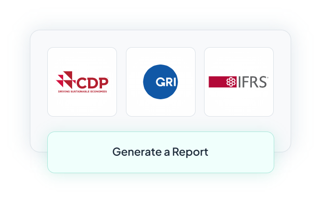Ensure your GHG emissions and ESG reporting is in full compliance with international frameworks such as GRI, CDP, IFRS, and more. ZERO's robust reporting features allow you to disclose emissions as well as ESG data, meeting global standards and stakeholder expectations with ease.